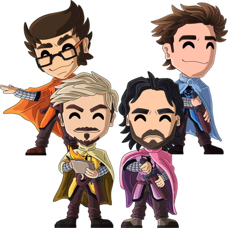 “Camelot- it hasn’t got a thang on me!” (CQ!) Inspired by the most recent tour of Rustage, Shwabadi, Connor Quest! and The Stupendium— The group all wear medieval knight-ish armor with their respective colors and logos, each with their own swords and poses to boot.